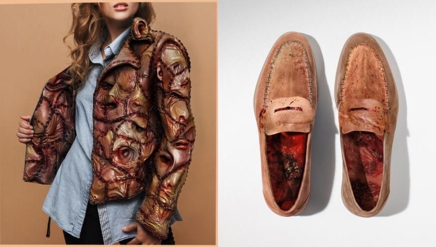 Un comunicado de prensa sobre la tienda, que presenta artículos con Photoshop, dijo que los productos están «hechos de cuero más fino, que, en segundo lugar, revelan rostros humanos en las chaquetas, dientes humanos en los zapatos y sangre humana que rezuma de las bolsas».