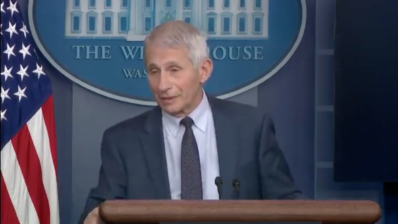 «Dr. Fauci», preguntó Peter Doocy de Fox News, «a medida que aconsejas al presidente sobre la posibilidad de nuevos requisitos de prueba para las personas que entran en este país, ¿incluye eso a todos?»