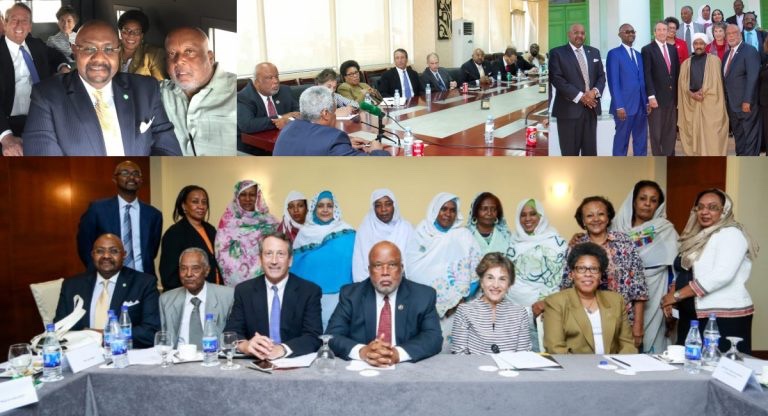 En noviembre de 2015, el representante Thompson y Al Khalafalla fueron fotografiados repetidamente, incluidos acogedores selfies de automóviles, durante un viaje HDI/Congressional a Sudán en asociación con el American Global Institute. Durante el viaje, el grupo «se reunió con representantes de la Sociedad Civil de Mujeres de Sudán. Esta reunión comenzó con el debate sobre el papel de la mujer en la lucha contra la trata sexual y el trabajo forzoso, que siguió siendo un problema importante en Sudán y dentro de la región».