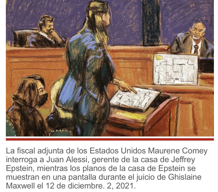 Alessi recordó haber visto a dos niñas que parecían ser menores de edad durante su empleo, que terminó en 2002. Identificó a uno de los dos como «Jane», una acusadora de Maxwell que testificó a principios de esta semana, describiéndola como una chica «golpeante y hermosa» que parecía tener alrededor de 14 o 15 años.
