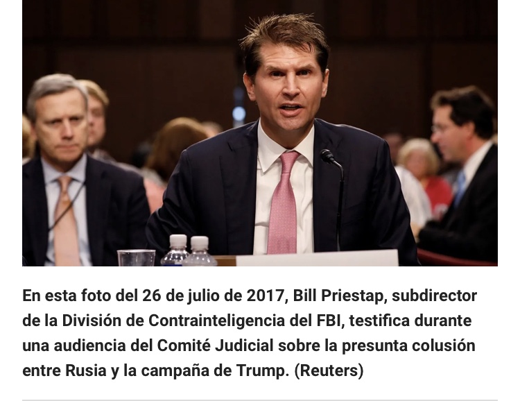 Priestap, que participó en la investigación de la oficina sobre el servidor de correo electrónico privado de Hillary Clinton y la investigación inicial del FBI sobre la intromisión rusa y la posible colusión con los asociados de la campaña de Trump durante las elecciones presidenciales de 2016, ha testificado ante el Congreso en múltiples ocasiones sobre el manejo de ambas investigaciones por parte de la oficina.