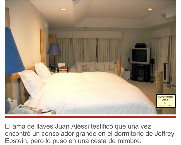 Alessi también le dijo a la corte que en algunas ocasiones encontró un «consolador grande» mientras limpiaba los cuartos de Epstein después de los llamados masajes del delincuente sexual tardío.