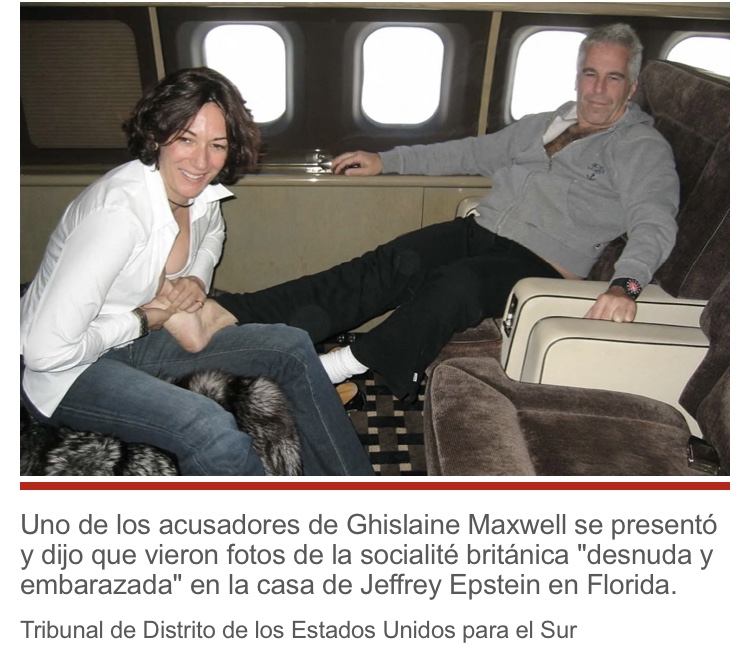 Una de las acusadoras de Ghislaine Maxwell afirmó que una vez vio una foto de la socialité británica «desnuda y embarazada» dentro de la mansión de Jeffrey Epstein en Florida.