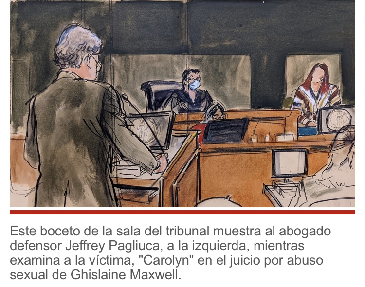 «Uno de tus recuerdos sobre la Sra. Maxwell afirmas que viste una fotografía de ella en la casa de Epstein, embarazada. ¿Correcto?» preguntó el abogado Jeffrey Pagliuca el martes, refiriéndose a la finca de Epstein en Palm Beach.