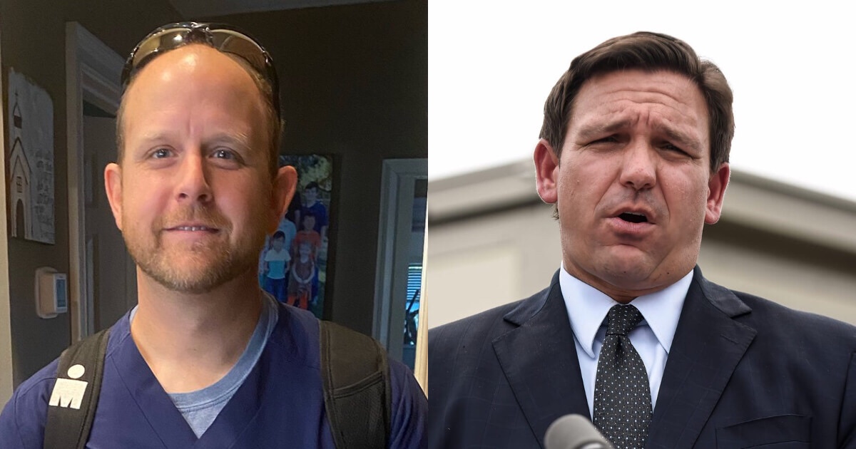 «Jeff, un médico de Florida que conocí en Brandon en la firma del proyecto de ley de la Sesión Especial, fue suspendido de su trabajo debido al mandato de Biden», anunció DeSantis. «Ahora ha sido reincorporado debido a nuestros esfuerzos por detener este mandato federal de mano dura».