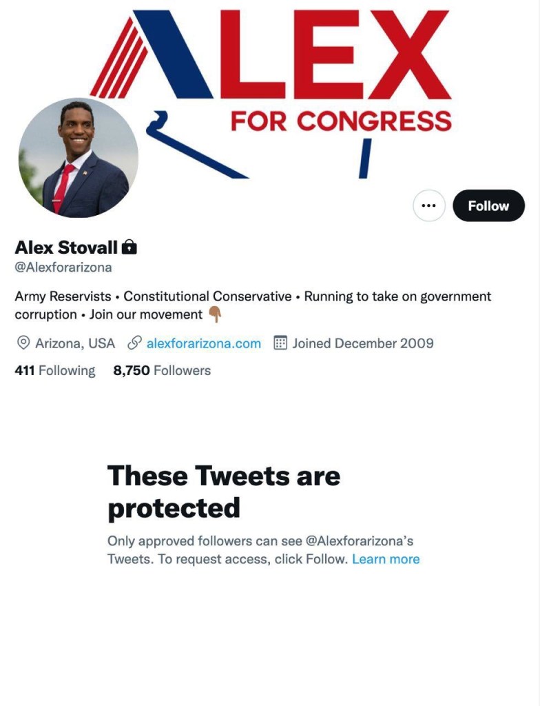 Alex Stovall, después de que salen a la luz sus declaraciones, hace privadas las cuentas de Twitter e Instagram de su campaña: