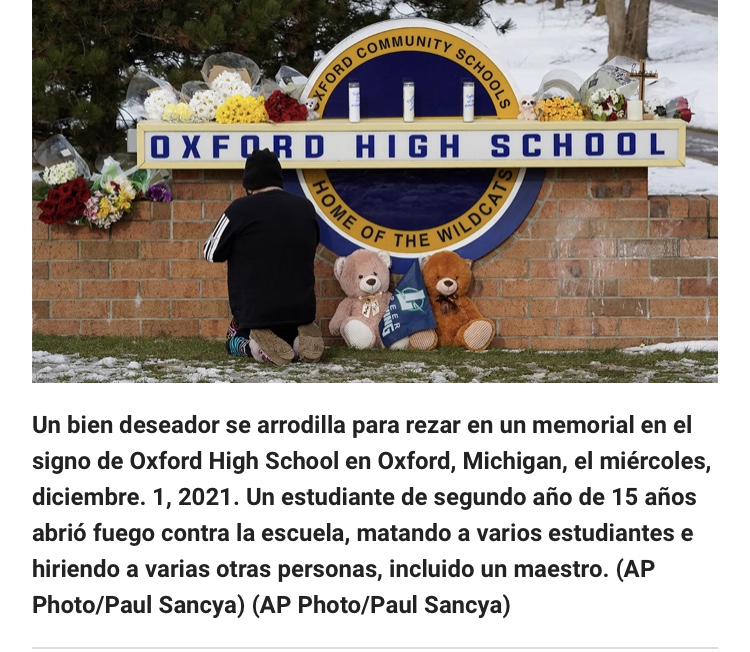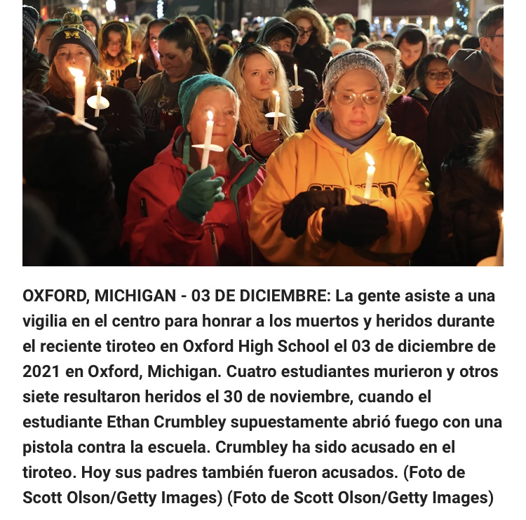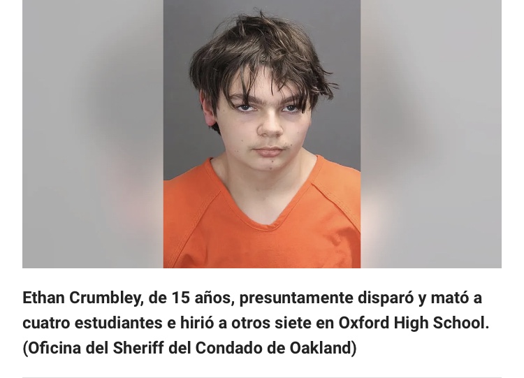 El tiroteo dejó cuatro estudiantes muertos y otras siete heridas. La policía detuvo rápidamente al sospechoso, Ethan Crumbley, de 15 años, el día del tiroteo.