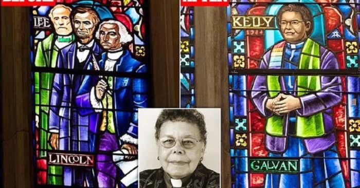 Una iglesia metodista en la localidad de Boise, Idaho, ha despertado una fuerte polémica por reemplazar un enorme vitral con una imágen de los padres fundadores Robert E Lee, George Washington y Abe Lincoln, por una con la imagen de Leontine Kelly, la primer obispo mujer negra de los Estados Unidos vistiendo una bufanda con los colores del arcoiris LGBT. https://t.me/QAnons_Espana