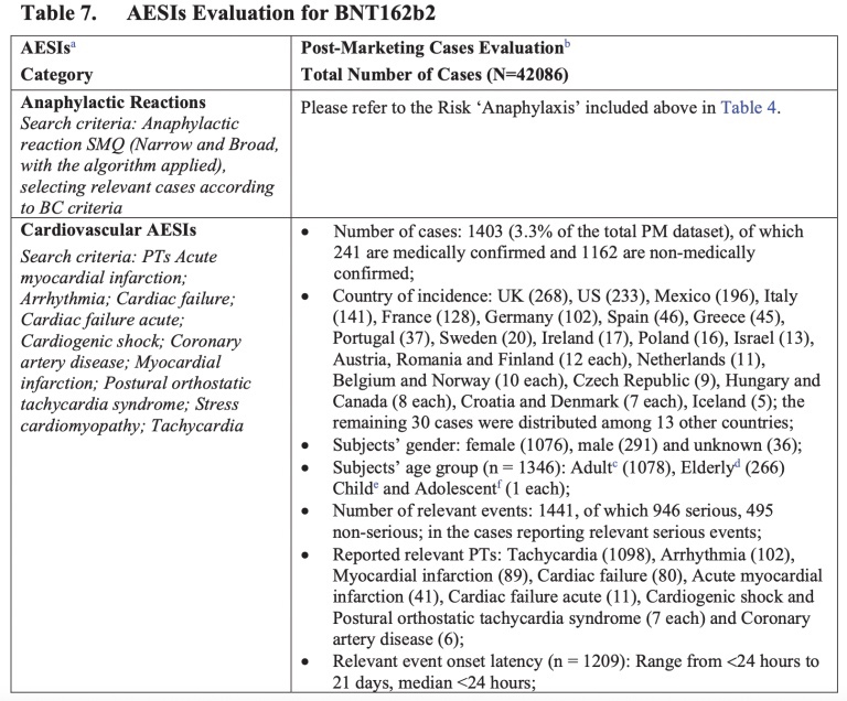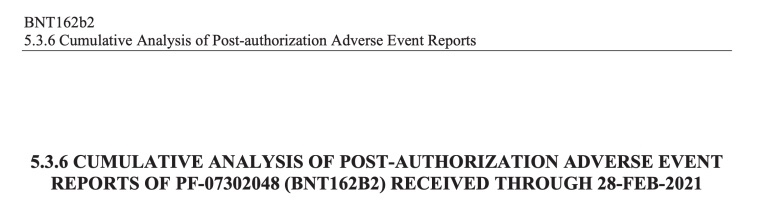 Este Informe Confidencial de Pfizer publicado como parte de un procedimiento de Libertad de Información (FOI) proporciona datos sobre muertes y eventos adversos registrados por Pfizer desde el inicio del proyecto de vacunación en diciembre de 2020 hasta finales de febrero de 2021, a saber, un período muy corto (como máximo dos meses y medio).