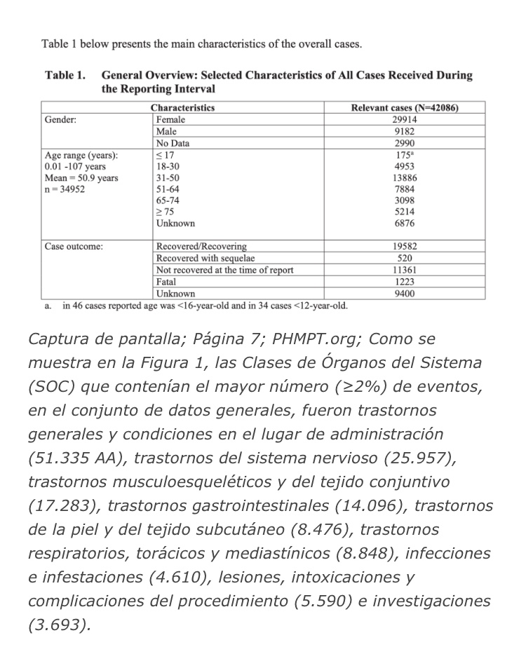 Enumerado como un «riesgo potencial importante» (Tabla 5, p. 11), el informe concluye que VAED «puede presentar manifestaciones clínicas graves o inusuales de COVID-19». Con respecto a VAED y VAERD, los datos concluyen: «En esta revisión de los sujetos con COVID-19 después de la vacunación, basada en la evidencia actual, VAED/VAERD sigue siendo un riesgo teórico para la vacuna. La vigilancia continuará».
