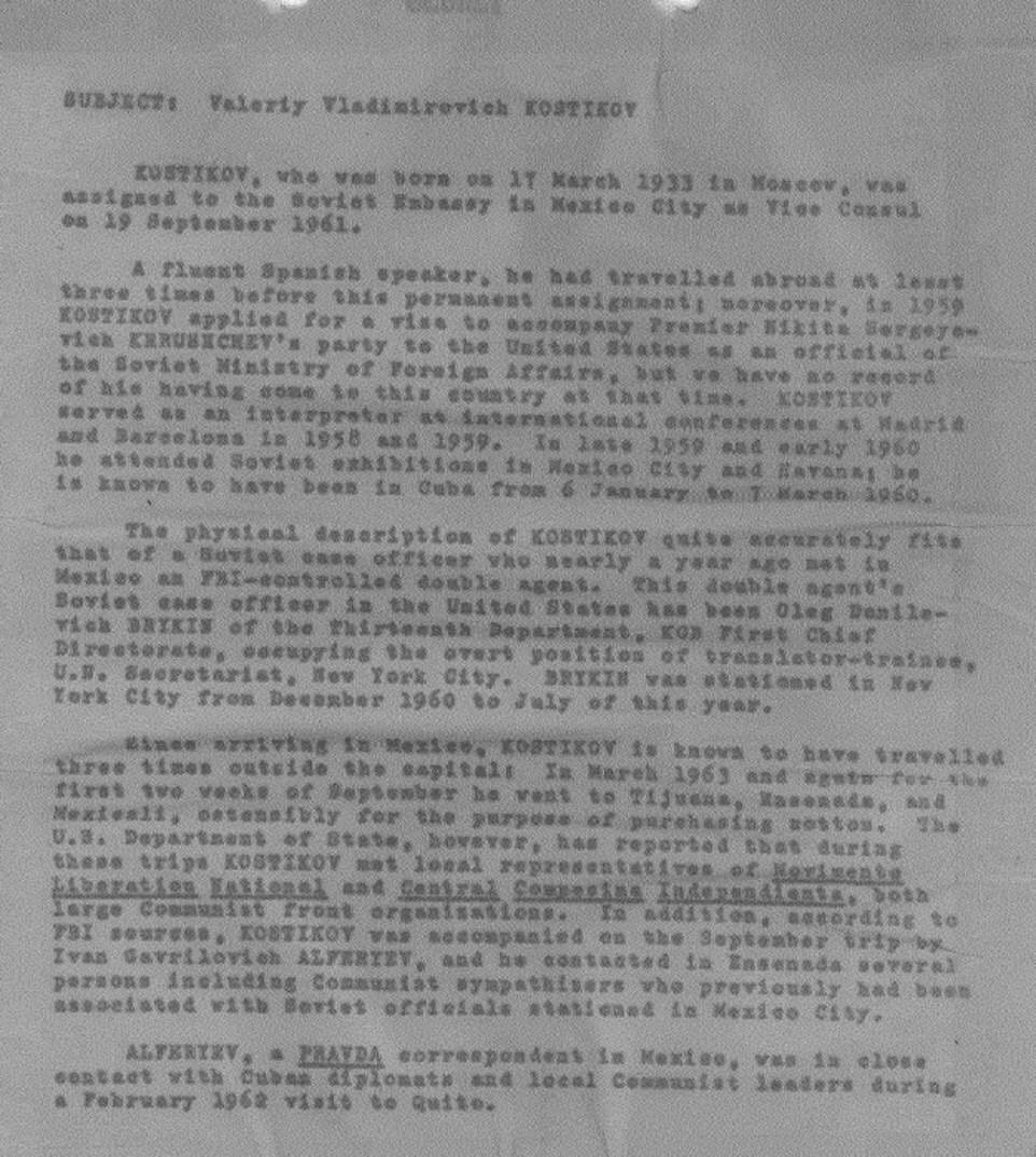 En septiembre de 1963, dos meses antes de matar a JFK, Oswald se reunió con el cónsul Valeriy Vladimirovich Kostikov, un agente de la KGB en la Ciudad de México.