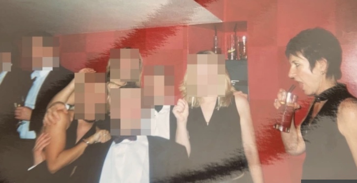 Una foto obtenida por The Sun el domingo muestra al sospechoso de tráfico sexual Maxwell bebiendo una copa mientras las chicas posaban con un corredor de la ciudad y su amigo.