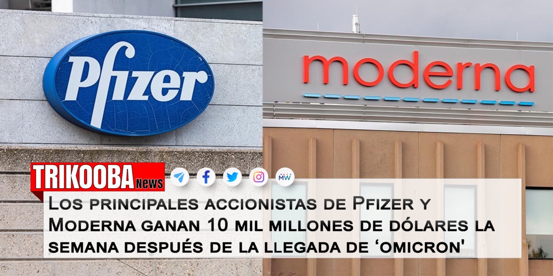 Los ocho principales accionistas de Pfizer y Moderna vieron aumentar su riqueza combinada en 10 mil millones de dólares en una ganancia inesperada de tan solo siete días después de que se ‘descubrió’ la variante Omicron, según un informe del Daily Mail.