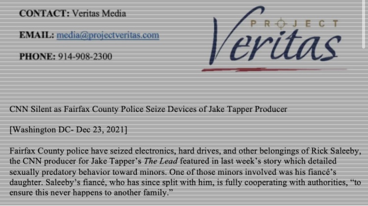 La policía del condado de Fairfax ha incautado electrónica, discos duros y otras pertenencias de Rick Saleeby, el productor de CNN de The Lead de Jake Tapper presentado en la historia de la semana pasada que detallaba el comportamiento sexualmente depredador hacia los menores. Uno de los menores involucrados fue la hija de su prometido. El prometido de Saleeby, que desde entonces se ha separado de él, está cooperando plenamente con las autoridades, «para garantizar que esto nunca le suceda a otra familia».