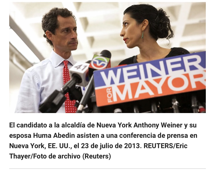 HUMA ABEDIN ADMITE QUE IGNORÓ LAS LLAMADAS DE HILLARY CLINTON A ANTHONY WEINER
