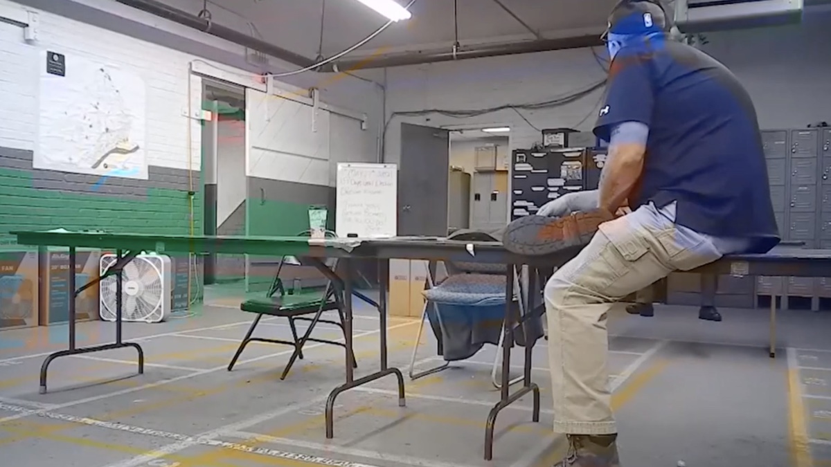 En un video, James Savage, que se desempeñó como custodio jefe y supervisor de almacén de máquinas de votación para el Departamento de Máquinas de Votación del Condado de Delaware durante las elecciones de noviembre de 2020, es visto hablando con otro funcionario electoral que está bloqueado desde la vista de la cámara.