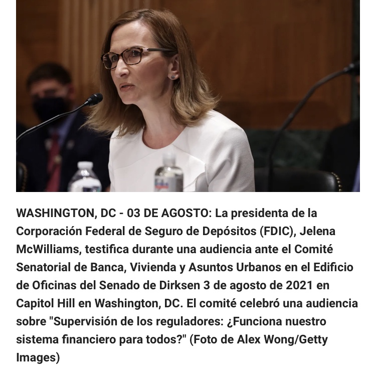 La presidenta de la FDIC, Jelena McWilliams, anunció su renuncia el viernes en una carta abierta dirigida al presidente Biden, pocas semanas después de que advirtiera de una «toma hostil» de la agencia por parte de los demócratas.