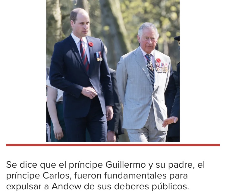 Se cree que el príncipe Carlos, el hermano mayor de Andrés y heredero al trono, y su hijo el príncipe Guillermo fueron fundamentales en las conversaciones para sacar a Andrés de la vida pública.