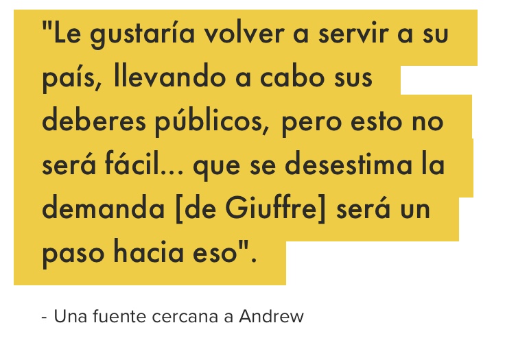 Andrew está desesperado por volver a la vida pública, especialmente mientras su madre, la reina Isabel, se prepara para celebrar su Jubileo de Platino el próximo verano. Espera que limpiar su nombre permita que eso suceda, según fuentes que lo conocen, y que creen que será una batalla cuesta arriba.