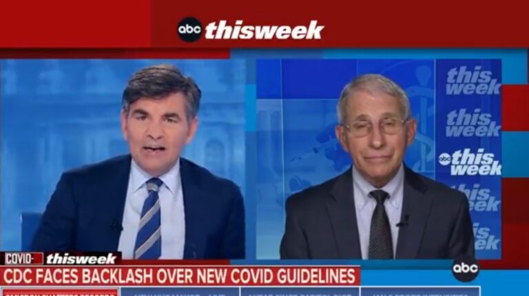 Fauci se unió al presentador George Stephanopoulos en «This Week» de ABC después de que los CDC emitieran una reducción de las directrices de aislamiento de diez días a cinco días, que se atribuyó a la cambiante «ciencia» y señalando factores económicos, una cuestión de política pública y no de orientación científica.