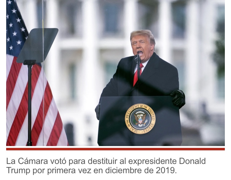 La Cámara de Representantes controlada por los demócratas votó para destituir a Trump por primera vez en diciembre de 2019 sobre artículos de abuso de poder y obstrucción del Congreso por acusaciones de que intentó presionar al presidente ucraniano Volodymyr Zelensky para que anunciara una investigación sobre el entonces candidato presidencial Biden.