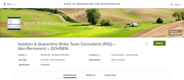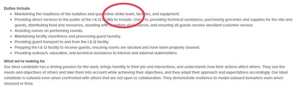Los «consultores del equipo de aislamiento y huelga de cuarentena» ganarán de 3.294 a 4.286 dólares mensuales por sus servicios, según una descripción publicada en septiembre en governementjobs.com, confirmando los planes del estado para el campamento de Covid.