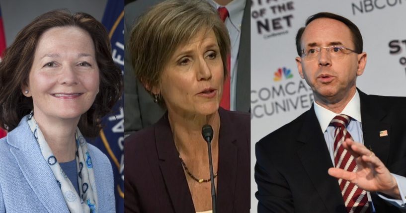 Rosenstein y Yates estuvieron directa y famosamente involucrados en los escándalos masivos de Obamagate y Spygate, que vieron a las agencias federales de inteligencia espiar ilegalmente la campaña presidencial del presidente Trump de 2016 utilizando órdenes falsas de FISA.