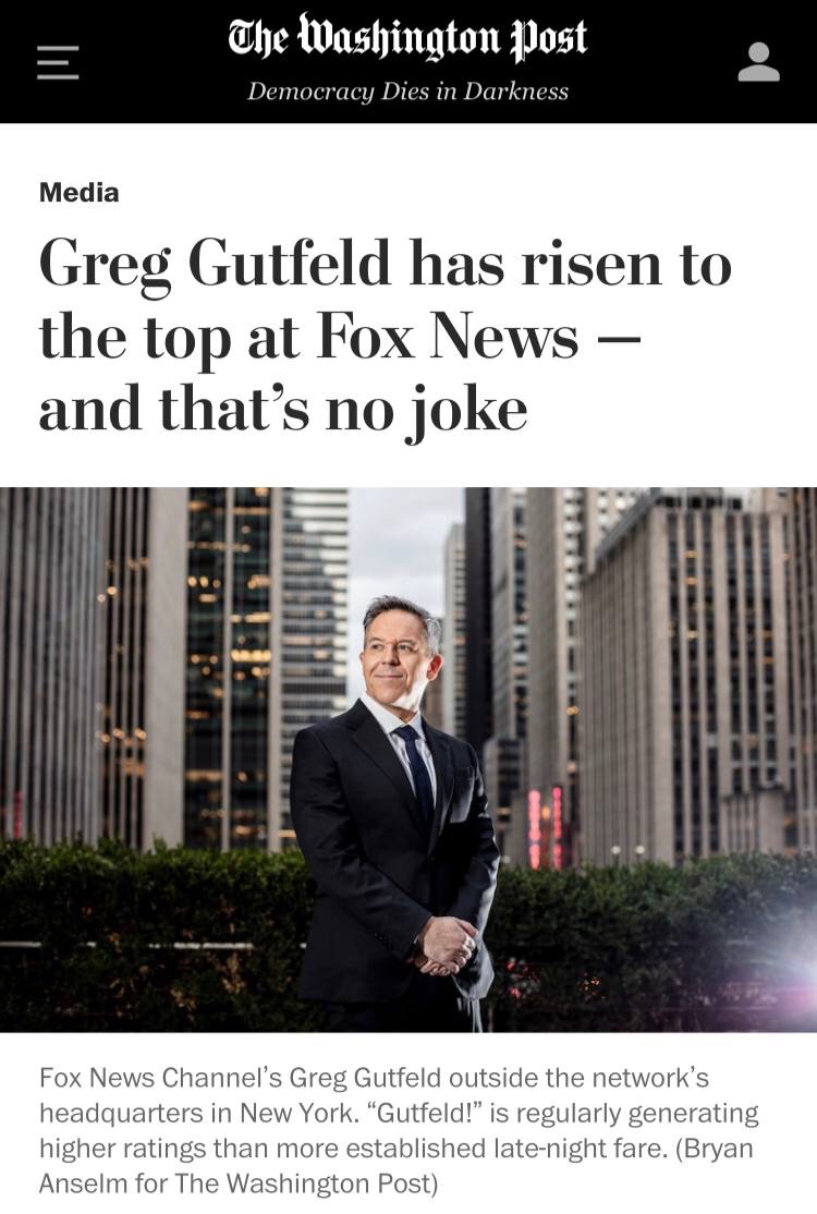 Su audiencia combinada en los dos programas: «The Five» y «Gutfeld!» — se disparó a un promedio de más de 5 millones por díaen el cuarto trimestre de 2021. Es toda una hazaña para un exeditor de una revista para hombres que se encuentra en una red poblada por algunas de las figuras más importantes y duraderas del panteón de los medios conservadores.