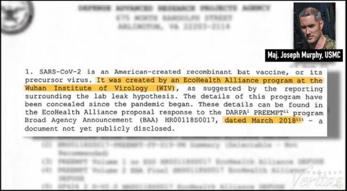 El Proyecto Veritas ha obtenido documentos militares ocultos en un sistema clasificado [AQUÍ – y AQUÍ – y AQUÍ] que muestran cómo EcoHealth Alliance se acercó a DARPA en marzo de 2018, buscando financiación para llevar a cabo una investigación de ganancias de funciones de coronavirus transmitidos por murciélagos.