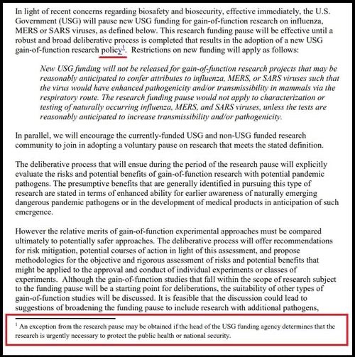 En la guía original en pdf para la pausa de investigación de 2014 sobre el emplazamiento de armas de virus del SARS hubo una importante nota al pie [LINK]: