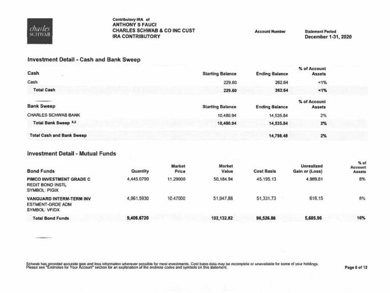 «Algunos de la derecha han especulado que Fauci podría haberse beneficiado de la pandemia», dijo Andrzejewski. «Las revelaciones muestran que ha invertido en fondos mutuos bastante amplios, sin tenencias reportadas de acciones individuales».