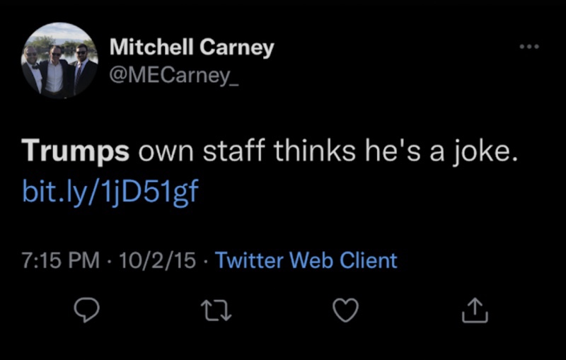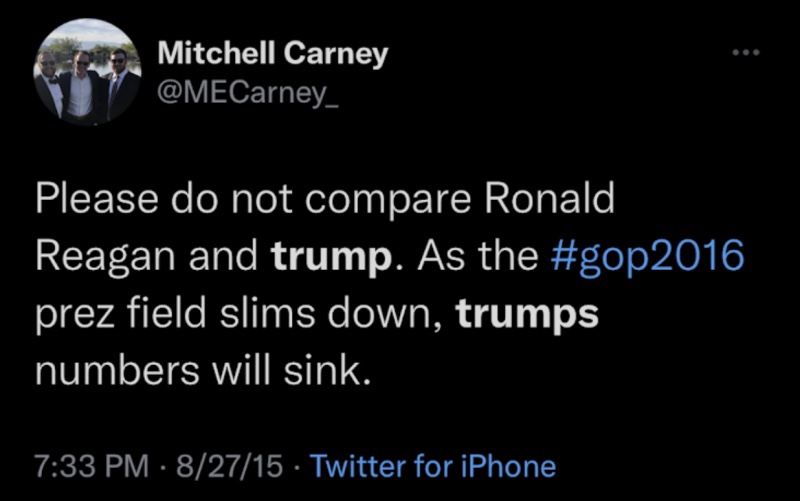 Peor aún, los tuits más antiguos del propio Carney muestran su historia como nunca Trumper: