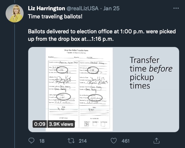 La portavoz del presidente Trump, Liz Harrington, publicó un hilo en Twitter que cataloga las «anomalías» electorales que se están descubriendo en Georgia, siendo las «anomalías» el eufemismo favorito de los medios corporativos que se engacha.