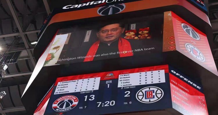 La Asociación Nacional de Baloncesto (NBA) sometió a una audiencia en el partido del martes por la noche entre los Washington Wizards y Los Angeles Clippers a un discurso del embajador chino en América Qin Gang.