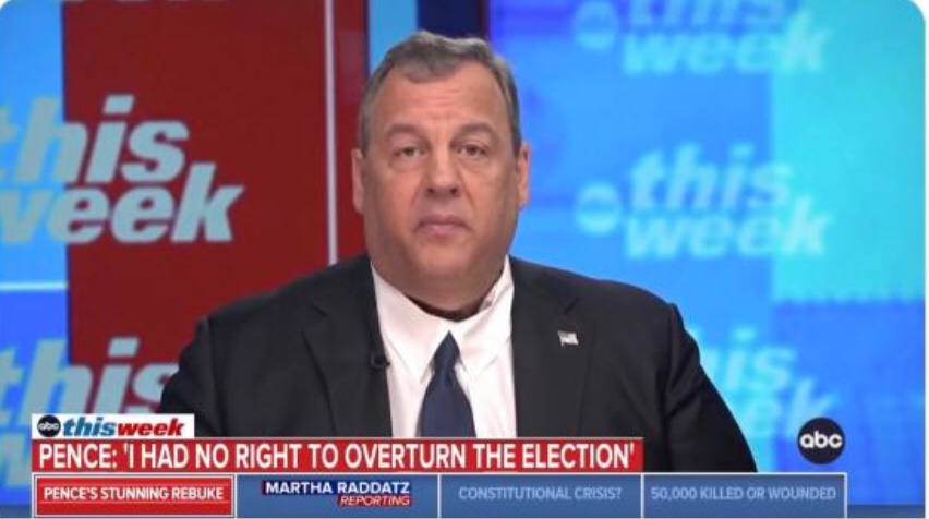 El exgobernador de Nueva Jersey, Chris Christie (derecha), elogió el domingo al exvicepresidente Mike Pence por defender sin disculpas la certificación de las elecciones del 6 de enero, al tiempo que criticó duramente al expresidente Donald Trump por intentar «intimidar» a Pence para que rechazara los resultados. https://t.me/QAnons_Espana