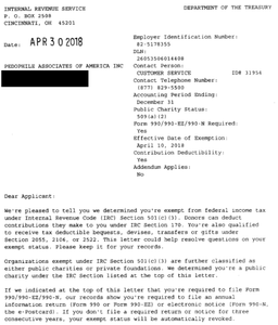 En ese momento, un escritor ahora con Reduxx se puso en contacto con el IRS para aclarar sus políticas de exención de impuestos para las entidades que participan en el avance o defensa de los derechos de los pedófilos, y también proporcionó información sobre Zearley y los Asociados Pedófilos de América, pero un portavoz del IRS afirmó que no podía hacer comentarios sobre contribuyentes