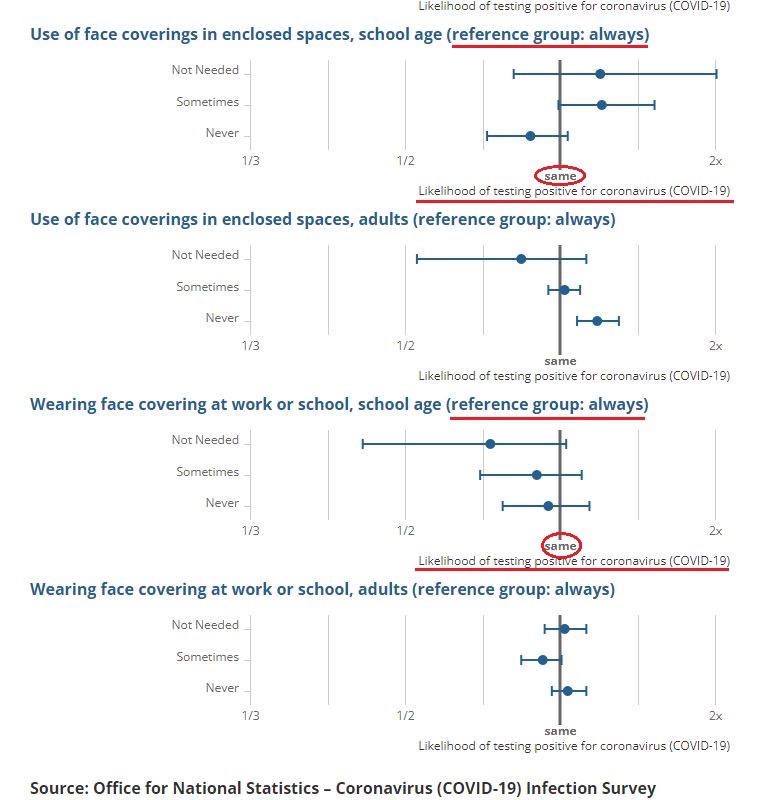 No es de extrañar que el Reino Unido esté abandonando todos los mandatos de máscaras y no enmascare a los niños en la escuela.Todavía no hay pruebas estadísticas sólidas de que las medidas opresivas funcionen.