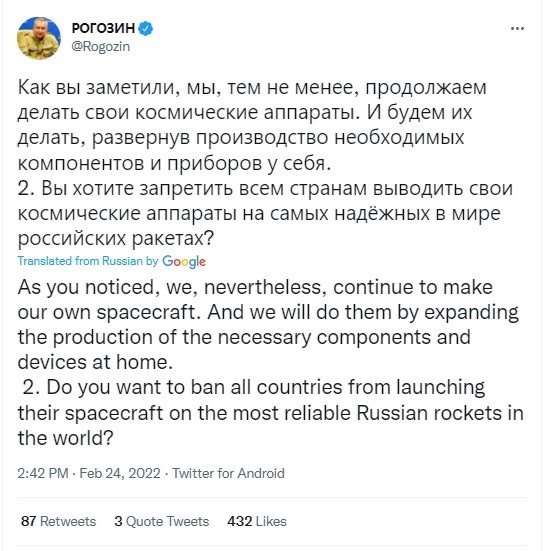 Dmitry dice que Rusia continúa fabricando su propia nave espacial a pesar de las sanciones anteriores.