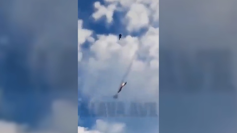 El tuit del ministerio todavía estaba en el momento de la publicación. El vídeo de 15 segundos va acompañado del pie de foto: «¿Qué está haciendo este as ucraniano?» El relato del Ministerio de Defensa lo describe como un avión de combate MiG-29 que destruye un avión ruso Su-35 con un misil.