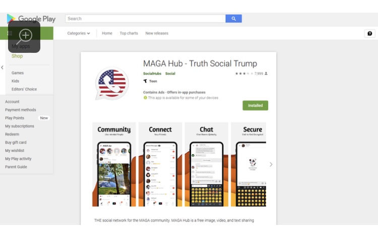 MAGA Hub promete varias características para los usuarios, incluyendo que está «encriptado de extremo a extremo, sin algoritmos», tiene una función de Stories y cuenta con una «cantidad sin fin de contenido personalizado para usted». También indica que los usuarios podrán jugar al curiosamente titulado «MAGA-Game»: