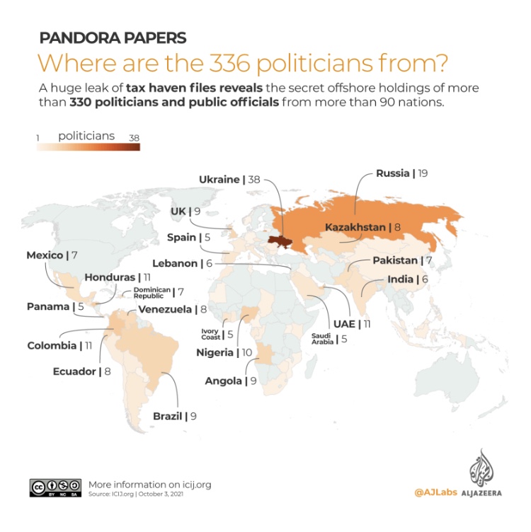 Los Papeles Pandora se basan en documentos filtrados al ICIJ y expuestos los tratos en alta mar de reyes, presidentes y primeros ministros, incluidos el rey Abdullah II de Jordania, el primer ministro checo Andrej Babis y el presidente keniano Uhuru Kenyatta.
