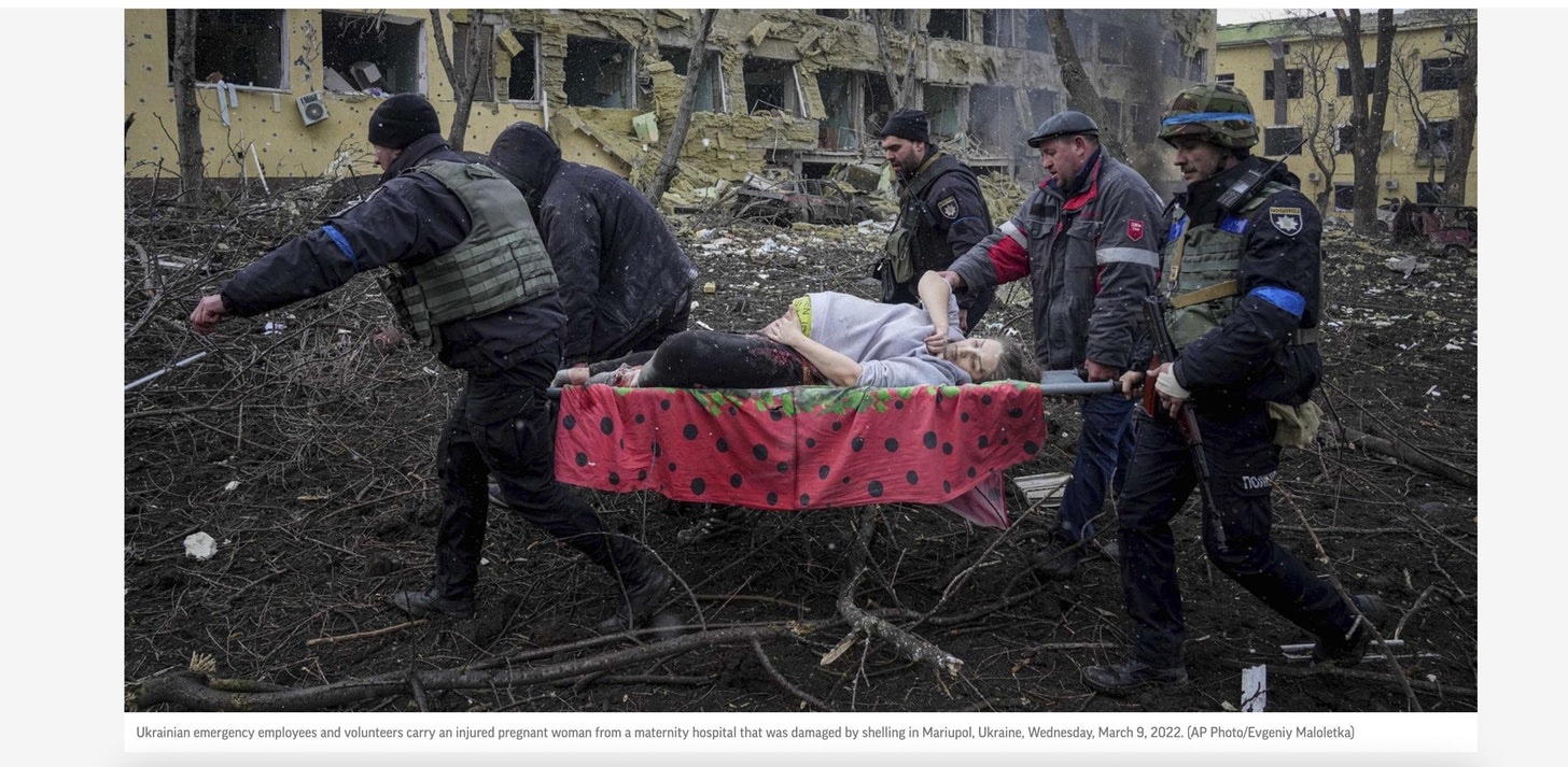 El miércoles 9 de marzo de 2022, se publicó una historia sobre un ataque aéreo ruso que supuestamente tuvo como objetivo un hospital de maternidad ucraniano. Según el New York Times, «una aparente huelga rusa el miércoles dañó y destruyó edificios en un complejo hospitalario en la ciudad de Mariupol, en el sur de Ucrania, incluida una sala de maternidad».
