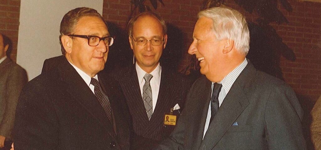 Estaba claro que el profesor Henry A. Kissinger había identificado la participación estadounidense en la creación de políticas europeas como vital para la paz y la estabilidad futuras del mundo. En ese momento, Kissinger tenía su sede en la Universidad de Harvard en Cambridge, Massachusetts. Aquí, el futuro fundador del Foro Económico Mundial, un joven Klaus Schwab, llamaría la atención de Henry A Kissinger.