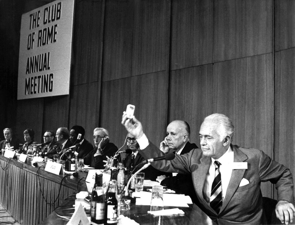 En 1972, el fundador del Club de Roma, Aurelio Peccei , había publicado su controvertido libro “ Los límites del crecimiento ”, un libro que había sido encargado por el Club de Roma y que adoptaba un enfoque maltusiano de la superpoblación. El libro pondría en tela de juicio la sostenibilidad del crecimiento económico mundial y Schwab invitaría a Peccei a pronunciar el discurso de apertura en el Foro Económico Mundial de 1973. Esta arriesgada estrategia de relaciones públicas pagó dividendos para Schwab y su organización. A partir de ese momento, el foro crecería en tamaño, escala y poder. Pero todo comenzó con un curso financiado por la CIA dirigido por Henry Kissinger en Harvard.
