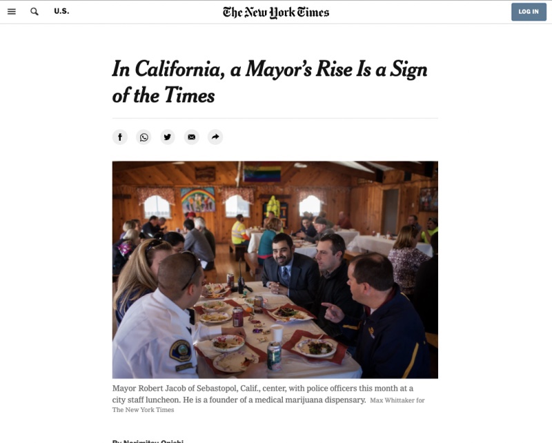 “Residente de Sebastopol desde 2004, el Sr. Jacob es un recién llegado. Creció en Rodeo, en el este de la Bahía, hijo de inmigrantes, su padre de México y su madre de Irak. Se mudó con su familia al Valle Central, pero incómodo en la cultura conservadora de la zona porque era gay, dijo, a los 15 años acampó en San Francisco, donde vivió por primera vez en un refugio para personas sin hogar para jóvenes. En San Francisco, el Sr. Jacob fue a la escuela secundaria y también trabajó para varios grupos de servicios sociales, ayudando a las víctimas de la violencia doméstica y a los jóvenes positivos para el VIH», continuó The New York Times.