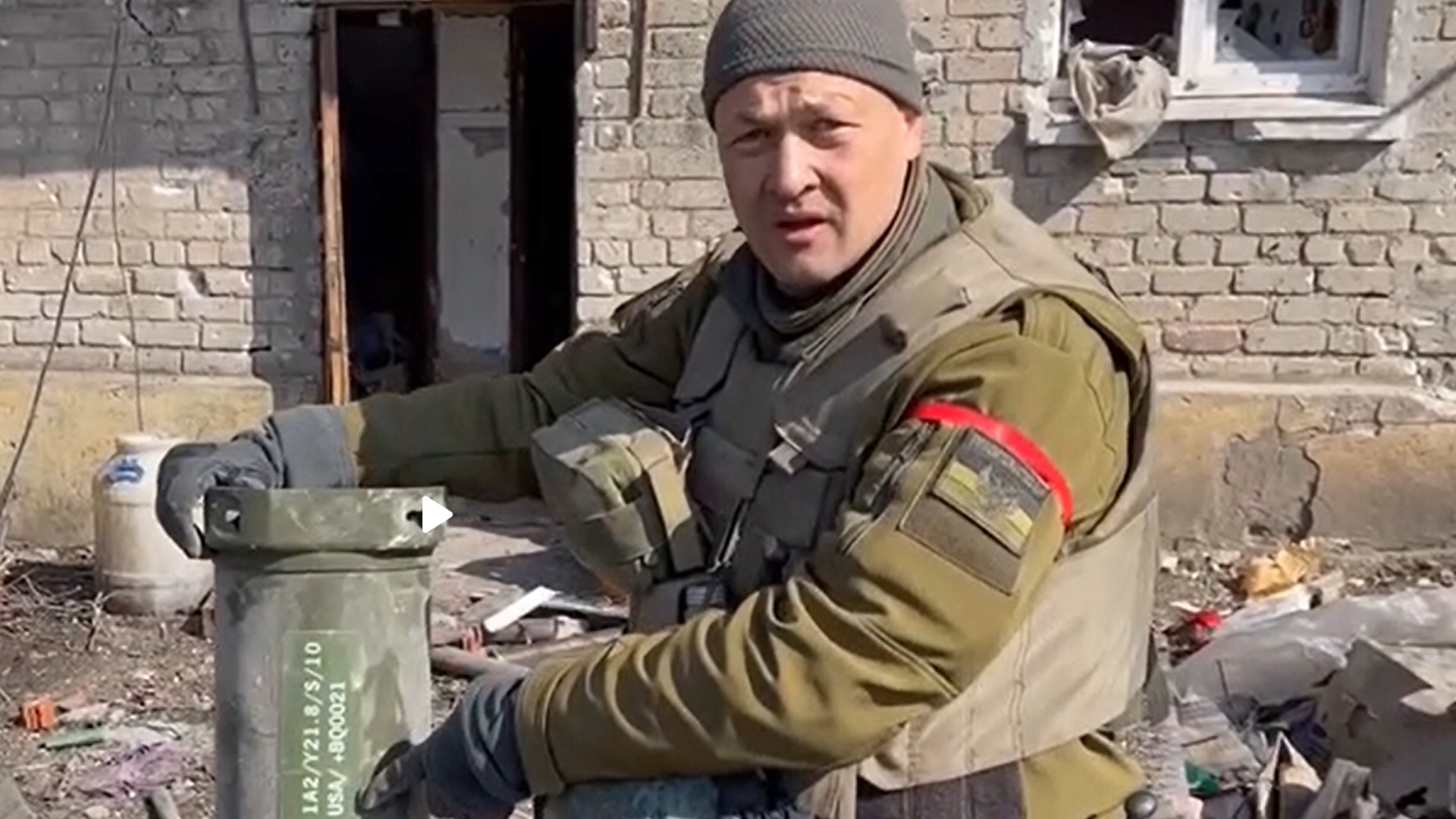 «Aquí hay otra exhibición del suministro de armas extranjeras a Ucrania para los nazis. Aquí se puede ver claramente la pertenencia, producción», dijo Gaguin, señalando la inscripción USA en el tubo de un misil antitanque.