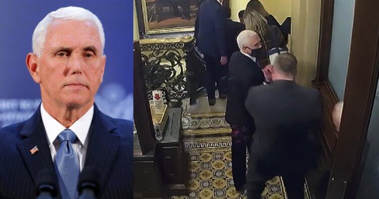 El gobierno de los Estados Unidos ha dicho que Pence salió de la cámara del Senado aproximadamente a las 2:20 p.m. del 6 de enero, poco después de que los primeros manifestantes y alborotadores irrumpieran en el edificio. Los fiscales han alegado que Pence fue a «un lugar seguro dentro del complejo del Capitolio» antes de regresar a la cámara unas cuatro horas más tarde.