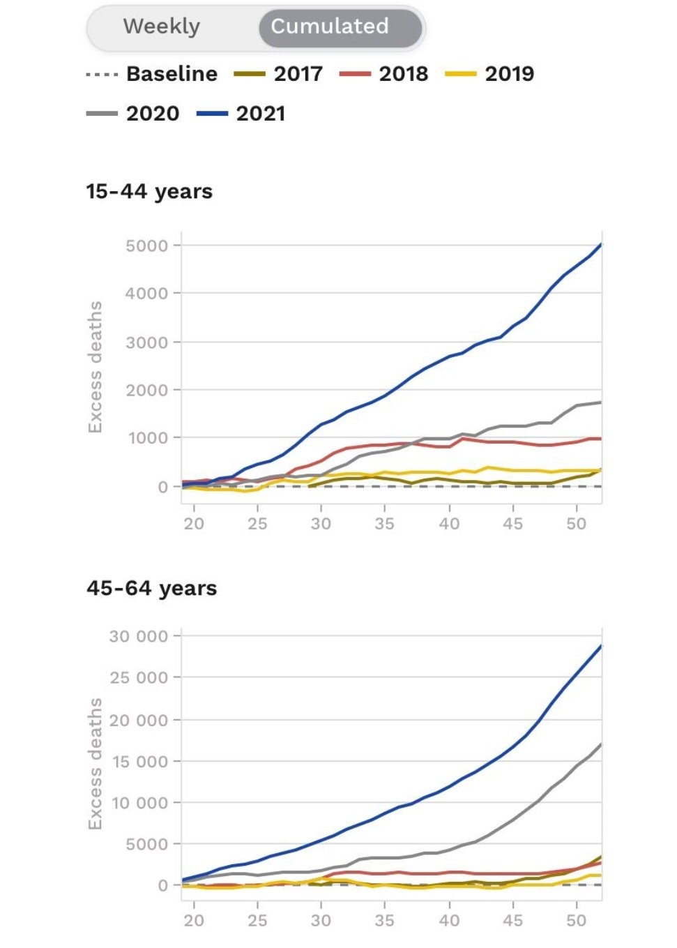 - Estos gráficos del exceso de mortalidad en Europa muestran que las cosas empeoraron, no mejor después del despliegue de la vacuna: