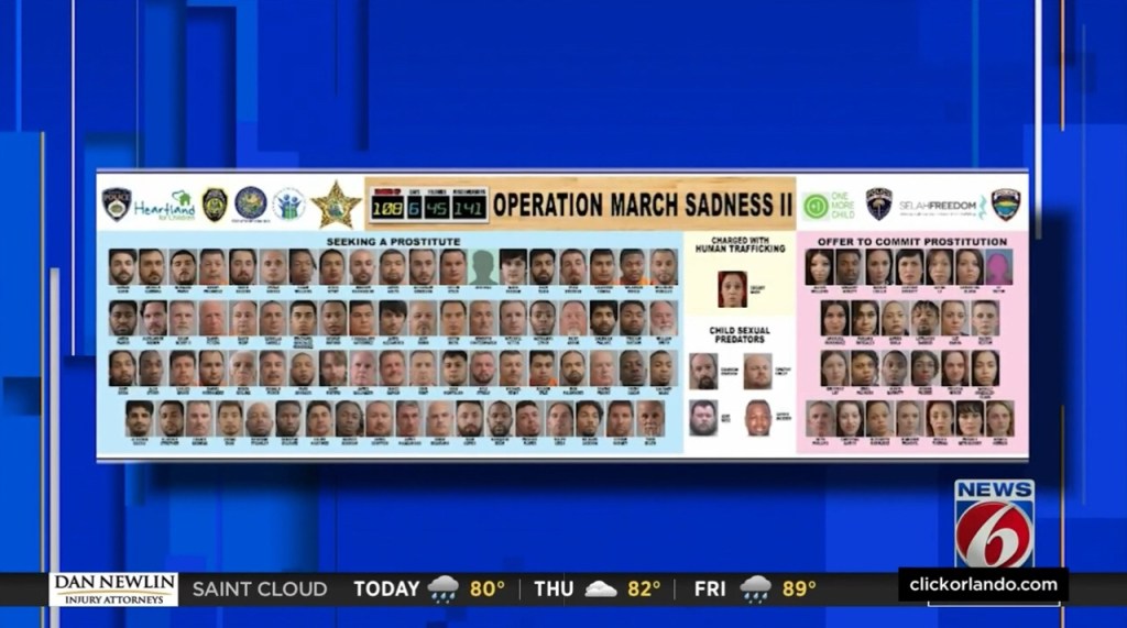 La oficina del sheriff dijo que los arrestos fueron el resultado de un esfuerzo interinstitucional que investigaba la trata de personas, la prostitución y los depredadores infantiles.
