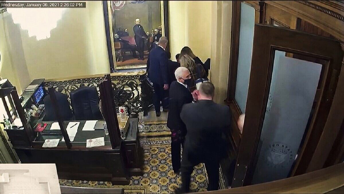 Pence llegó al lugar a las 2:28 p.m., unos dos minutos después de salir de la cámara del Senado, según James. Pence abandonó el lugar seguro alrededor de las 6:29 p.m. para volver a la cámara.